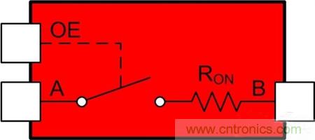 通過輸出使能引腳 (OE),用電壓來控制這個開關(guān);只需在高電平關(guān)閉開關(guān),在低電平時打開開關(guān)。(對于低電平有效OE引腳來說,恰恰相反;這些引腳上通常會有標(biāo)簽進(jìn)行標(biāo)注。)RON 是開關(guān)的內(nèi)部電阻。A和B到開關(guān)的兩個連接點(diǎn)。