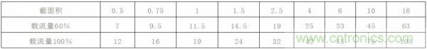 表3 允許流通電流與導(dǎo)線截面積關(guān)系經(jīng)驗(yàn)值