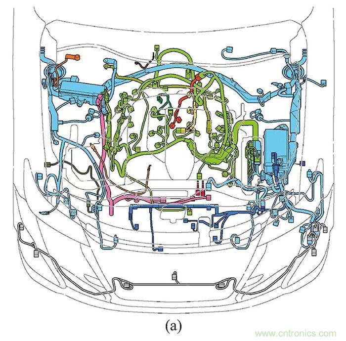 汽車線束是電路的主干,通過插接器、交接點(diǎn)與車內(nèi)電器或車體連接,可從線束圖中了解線束的走向及線束各部插接器的位置。一般線束圖是按照系統(tǒng)或在車輛上的安裝位置分類,如2016 款豐田皇冠線束圖分為發(fā)動機(jī)室、儀表線束、車身、座椅和天線及部分,如下圖所示。