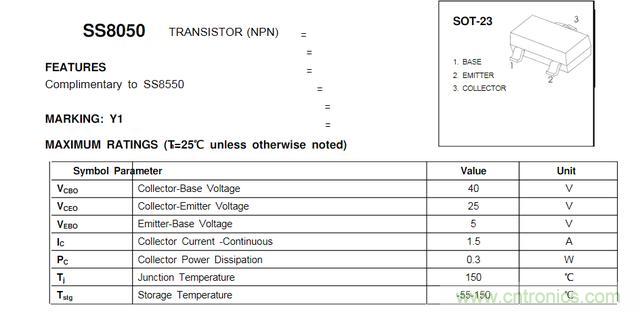 (1)我們先來看下SS8050的幾個基本參數(shù)