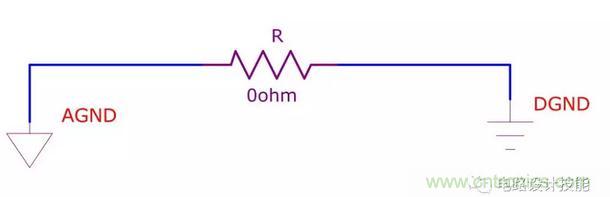 用于信號(hào)完整性的模擬地和數(shù)字地的單點(diǎn)連接 - 有人說0?跟沒有一樣,干嘛不直接連接上?想象一下如果你在電路原理圖里沒有這個(gè)0?的電阻,做PCB Layout的時(shí)候就可能忽略這個(gè)單點(diǎn)連接的原則,CAD軟件也會(huì)亂連在一起,達(dá)不到你單點(diǎn)連接的初衷。當(dāng)然單點(diǎn)連接的時(shí)候你也可以用磁珠,我個(gè)人的觀點(diǎn)其實(shí)連接點(diǎn)的位置選擇好的話,磁珠除了比電阻貴之外,沒有什么好處,實(shí)際的操作中你可以用比較小的封裝的0?電阻,比如0402、0201,焊接的時(shí)候直接用烙鐵將兩端搭接在一起就可以,連電阻也省了;