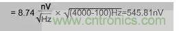 輸出噪聲=等量輸入噪聲×增益=545.81nV×5=2.73uV(適用于1級(jí)增益)或545.81nV×100=54.58uV(適用于2級(jí)增益)。