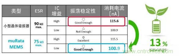 由于其低ESR的特性,可降低IC增益。因此,可抑制振蕩電路的消耗電流,實(shí)現(xiàn)整個(gè)設(shè)備的低功耗。