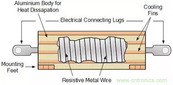 繞線電阻是將鎳鉻合金導(dǎo)線繞在氧化鋁陶瓷基底上,一圈一圈控制電阻大小。繞線電阻可以制作為精密電阻,容差可以到0.005%,同時(shí)溫度系數(shù)非常低,缺點(diǎn)是繞線電阻的寄生電感比較大,不能用于高頻。繞線電阻的體積可以做的很大,然后加外部散熱器,可以用作大功率電阻。