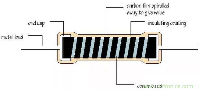 碳膜電阻主要是在陶瓷棒上形成一層碳混合物膜,例如直接涂一層,碳膜的厚度和其中碳濃度可以控制電阻的大?。粸榱烁泳_的控制電阻,可以在碳膜上加工出螺旋溝槽,螺旋越多電阻越大;最后加金屬引線,樹脂封裝成型。碳膜電阻的工藝更加復(fù)雜一點(diǎn),可以做精密電阻,但由于碳質(zhì)的原因,還是溫度特性不太好。