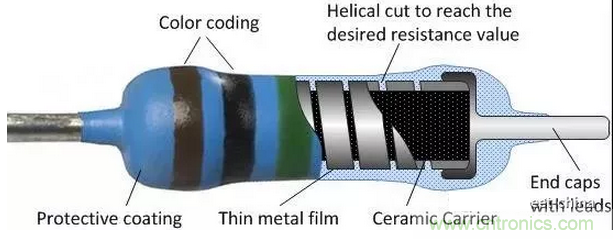 軸線引線電阻通常都是圓柱形,兩個(gè)外電極是圓柱體兩端的軸向?qū)Ь€,根據(jù)材料和工藝的不同還可以再分為多種。