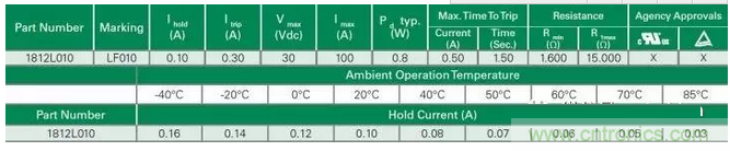 選用PTC的時(shí)候,首先要考慮設(shè)計(jì)工作電流,不能超過PTC保持電流,此時(shí)PTC可以保持低阻抗?fàn)顟B(tài)。PTC的保持電流會(huì)隨著工作溫度的升高而降低,因此,工作溫度時(shí)需要考慮的重要因素。