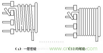 ①一層密繞:布線只占一層,緊密的線與線間沒(méi)有空隙,整齊的繞線如圖3a所示。