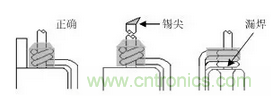 1)將銅線理直理順并纏在相應(yīng)的腳上;