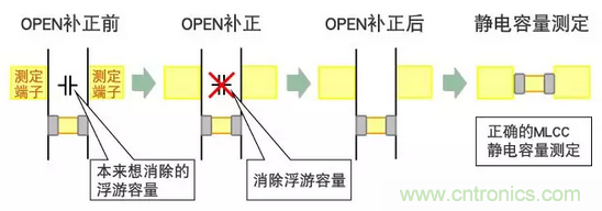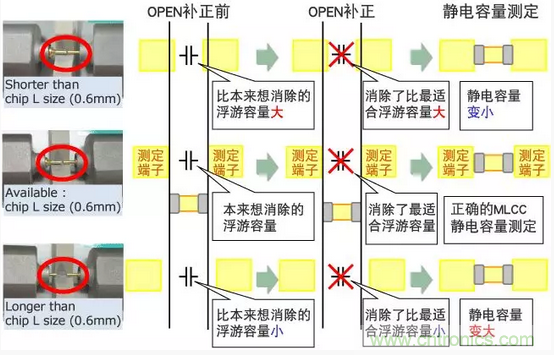 OPEN補正端子間距離和MLCC L寸法不一樣的狀態(tài)下進行補正、治具自身的浮游容量就不能得到正確的0補正。