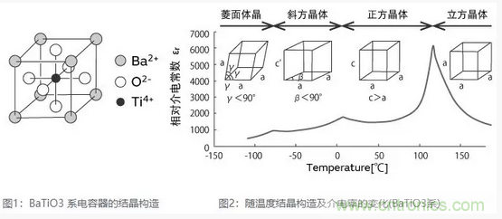 BaTiO3系陶瓷電容器加熱到居里點以上時,結(jié)晶構(gòu)造由正方晶系轉(zhuǎn)變成立方晶系。冷卻到居里點溫度以下時,結(jié)晶構(gòu)造由立方晶系轉(zhuǎn)變成正方晶系。(圖2)