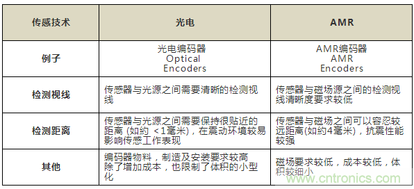 表1:光電和AMR傳感技術(shù)的比較