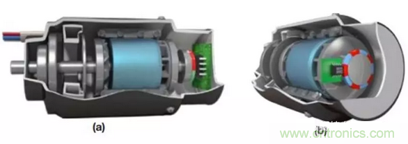 針對(duì)大多數(shù)BLDC控制系統(tǒng),根據(jù)可用空間大小和電機(jī)軸的可接近性,有許多方法來(lái)配置和安裝傳感器。以ADA4571作例,如圖3所示是兩個(gè)較普遍的安裝配置。