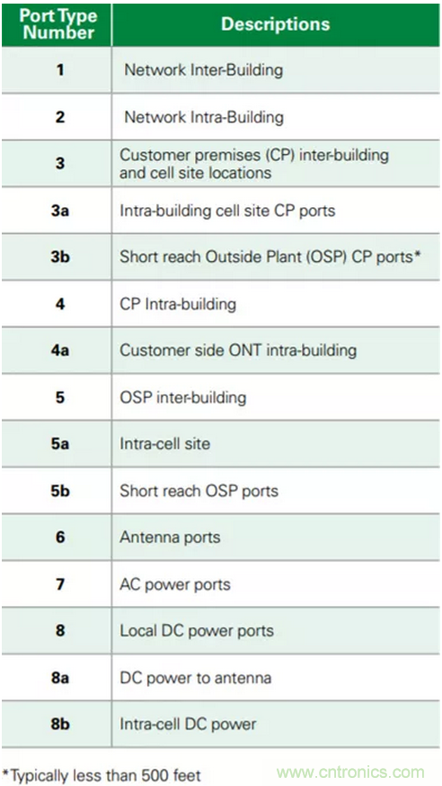 在美國,電信公司在網(wǎng)絡(luò)側(cè)安裝設(shè)備的電路保護(hù)(例如,安裝光纖網(wǎng)絡(luò)終端單元或ONT的附近機(jī)柜中)必須符合NEBS(網(wǎng)路設(shè)備建設(shè)系統(tǒng))設(shè)計(jì)指南,這反過來可能需要符合GR-1089第6期端口類型3浪涌。由于這些回路很短,端口類型可被指定為類型3a / 5a。每個(gè)供應(yīng)商應(yīng)界定其自身的防雷電要求。端口類型3是這類設(shè)備中的最嚴(yán)重情況。欲了解有關(guān)端口類型的更多信息,請參見表2。