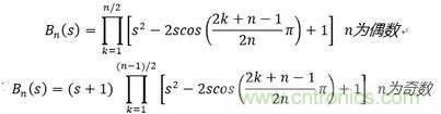 根據(jù)此特性要求,巴特沃斯低通濾波器的傳遞函數(shù)可由Butterworth多項式來實現(xiàn),即