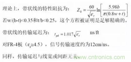 帶狀線就是一條置于兩層導(dǎo)電平面之間的電介質(zhì)中間的銅帶。如果線的厚度和寬度,介質(zhì)的介電常數(shù),以及兩層接地平面的距離都是可控的,則線的特性阻抗也是可控的,且精度在10%之內(nèi)。