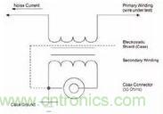 射頻電流探頭是一個(gè)初級(jí)類型為插入式的射頻電流變壓器。即,當(dāng)我們將探頭夾在待測(cè)電流流經(jīng)的導(dǎo)線或者電纜上的時(shí)候,這些導(dǎo)體就構(gòu)成了變壓器的初級(jí)線圈。這種探頭的夾合特性使得它很容易被安置在任意導(dǎo)體或者電纜的四周。其本質(zhì)就是一個(gè)寬帶的高頻變壓器。利用電流探頭,可以在不對(duì)電路造成物理影響的情況下,實(shí)現(xiàn)對(duì)電纜上的高頻電流的測(cè)量。既然打算將電流探頭夾合在導(dǎo)線上,那么如圖2 所示的變壓器初級(jí)實(shí)際上就是待測(cè)共模電流流過的電導(dǎo)體本身。另外,因?yàn)楣材k娏鞅徽J(rèn)為是流過導(dǎo)體后,再經(jīng)過回流導(dǎo)體(例如:框架,共地面或者接地)返回到電源的,所以這個(gè)變壓器的初級(jí)線圈通常被認(rèn)為只有一匝。在某些電流探頭的模型中,次級(jí)輸出端內(nèi)部接的是阻性負(fù)載,這樣可以在一個(gè)很寬的頻率范圍內(nèi)提供非常穩(wěn)定的轉(zhuǎn)移阻抗。