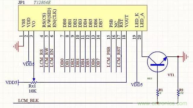 7、LCM12864液晶模塊(ST7920)本電路是常見的12864電路,價格便宜,帶中文字庫??梢酝ㄟ^PSB端口的電平來設置其工作在串口模式還是并行模式,帶背光控制功能。