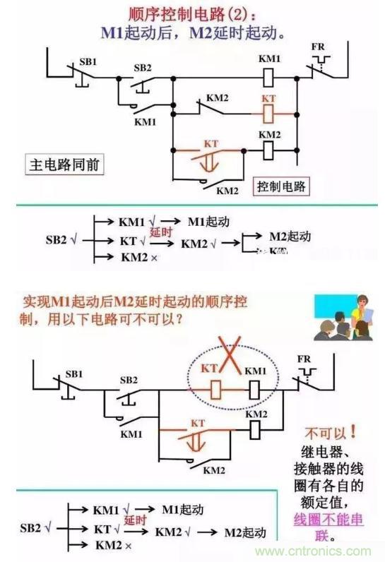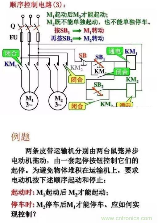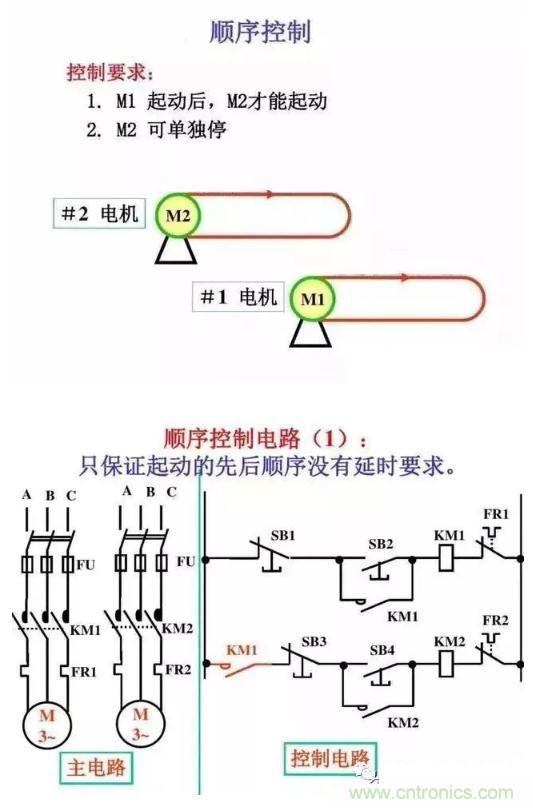 【導讀】在電氣控制電路里,順序控制也是應用很廣泛的電氣控制電路,經常被用在傳送帶,工業(yè)流水線,機械手等控制當中,關于順序控制電路,簡單一句話就說明原理:一個接一個的啟動,全部停止或者一個接一個的停止,今天我們就重點來看一下順序控制電路和具體實例。