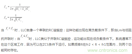 此外,如果MOSFET的寄生輸出電容C1和C2與Cr的容值相當(dāng),則諧振頻率fr也會(huì)受到器件的影響。正是由于這個(gè)原因,在設(shè)計(jì)過(guò)程中,選擇Cr值大于C1和C2,可以解決這個(gè)問(wèn)題,使fr值不受所用器件的影響。