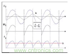 分析一下諧振頻率的方程式就會(huì)發(fā)現(xiàn),在高于峰值增益頻率時(shí),諧振網(wǎng)絡(luò)的輸入阻抗是感抗,諧振網(wǎng)絡(luò)的輸入電流(Ip)滯后于諧振網(wǎng)絡(luò)的輸入電壓(Vd)。在低于峰值增益頻率時(shí),諧振網(wǎng)絡(luò)的輸入阻抗變?yōu)槿菘?,并且Ip領(lǐng)先Vd。在電容區(qū)工作時(shí),體二極管在MOSFET開關(guān)期間執(zhí)行反向恢復(fù)操作。