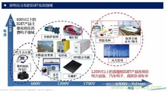 作為新型功率半導(dǎo)體器件的主流器件,IGBT已廣泛應(yīng)用于工業(yè)、 4C(通信、計(jì)算機(jī)、消費(fèi)電子、汽車(chē)電子)、航空航天、國(guó)防軍工等傳統(tǒng)產(chǎn)業(yè)領(lǐng)域,以及軌道交通、新能源、智能電網(wǎng)、新能源汽車(chē)等戰(zhàn)略性新興產(chǎn)業(yè)領(lǐng)域。