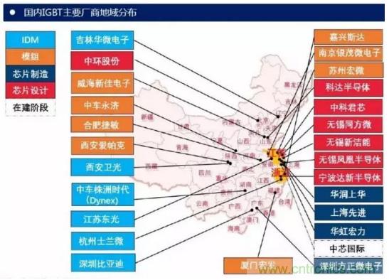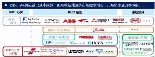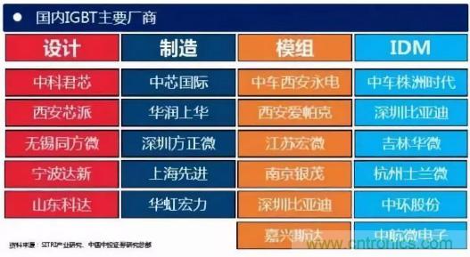 從公司來(lái)看,國(guó)外研發(fā)IGBT器件的公司主要有英飛凌、 ABB、三菱、西門(mén)康、東芝、富士等。中國(guó)功率半導(dǎo)體市場(chǎng)占世界市場(chǎng)的50%以上,但在中高端MOSFET及IGBT主流器件市場(chǎng)上,90%主要依賴進(jìn)口,基本被國(guó)外歐美、日本企業(yè)壟斷。