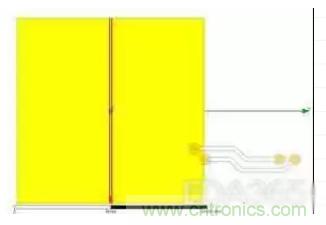 在HFSS中建立包含一對差分線的PCB模型,如圖1,PCB尺寸:50mm*50mm*6mm,中間兩條紅色線為一對差分線。介質(zhì)為FR4,金屬為銅材料。