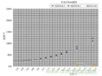 為了使layout設(shè)計(jì)更合理和滿(mǎn)足需求,對(duì)不同線(xiàn)徑的銅箔進(jìn)行了電流承載能力的測(cè)試,用測(cè)試結(jié)果作為設(shè)計(jì)的參考。