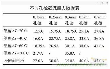 孔的載流能力取決于銅壁周長(zhǎng)。