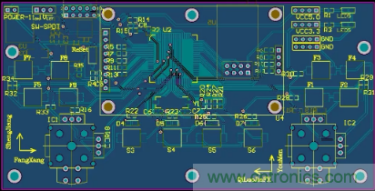 接下來將元件移到電路板外框內(nèi),并進行正常的布線。