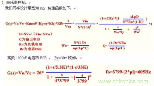 下面分電壓型和峰值電流型控制來設計此電源環(huán)路.所有設計取樣點在輸出小LC前面.如果取樣點在小LC后面,由于受LC諧振頻率限制,帶寬不能很高.1)電流型控制