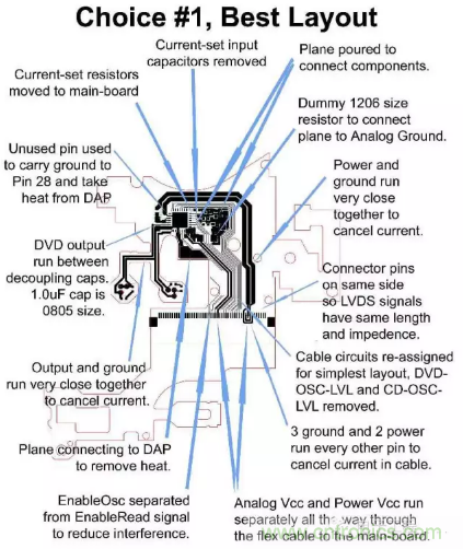 我在某家半導(dǎo)體公司任職時(shí),做的是驅(qū)動(dòng)PC用DVD刻錄機(jī)內(nèi)雷射頭的芯片;我看了一眼某客戶(hù)設(shè)計(jì)的軟性電路板原型,就知道他們?nèi)狈Ω咚倩蛏嵩O(shè)計(jì)方面的經(jīng)驗(yàn),畢竟他們之前做的CD刻錄機(jī)數(shù)據(jù)速率比較低,而且用的芯片不會(huì)產(chǎn)生太多熱度。而我們花了大半年的時(shí)間教客戶(hù)該怎么設(shè)計(jì)他們的PCB(圖5)。