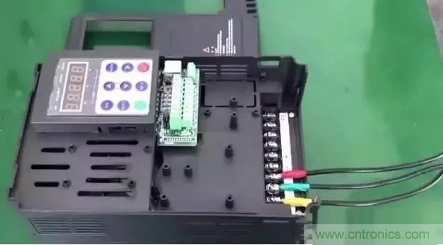 3、將電機(jī)線按照黃、綠、紅按照順序接到U, V, W端子處。