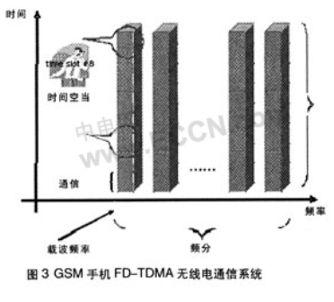 思考當(dāng)今電子世界,到處信號持續(xù)不斷地變化:音頻的輸入/輸出能產(chǎn)生輻射及傳導(dǎo)EMI,然后發(fā)射更高頻率的射頻線,導(dǎo)致信號失真;手機(jī)天線(TDMA脈沖)會發(fā)射射頻信號,此信號可被長線頭戴式耳機(jī)接收,導(dǎo)致音頻信號通路中EMI噪音;GSM(全球通)手機(jī)標(biāo)準(zhǔn)使用頻分多路傳輸和時(shí)分多路傳輸,同時(shí)傳送大量電話,如圖3所示。