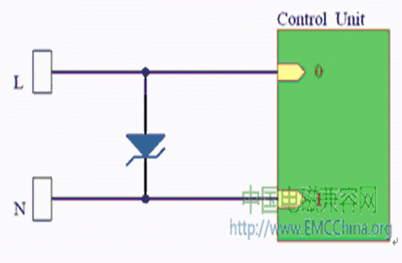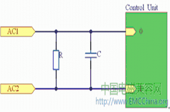 為了防止控制板電路產(chǎn)生的傳導(dǎo)干擾,可在電路的進(jìn)入口(即AC兩端)并接上一個電容C,圖1所示是一個簡單的電容抗擾電路連接圖。圖中的電容屬于安全電容,但必須在該電容的兩端并聯(lián)一個安全電阻,以防止電源線拔插時電源線插頭長時間帶電。因為安全標(biāo)準(zhǔn)規(guī)定,當(dāng)正在工作之中的機(jī)器電源線被拔掉時,在兩秒鐘內(nèi),電源線插頭兩端所帶的電壓(或?qū)Φ仉娢?應(yīng)小于原來電壓的30%。