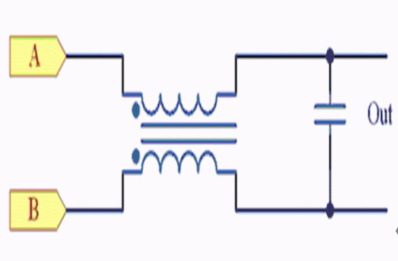 圖4中共模扼流圈的特殊繞制方法決定了它僅對共模電流有抑制作用,而對電路工作所需要的差模電流沒有影響。因此,共模扼流圈是解決共模干擾的理想器件。理想的共模扼流圈的低頻共模抑制作用較小,而隨著頻率的升高,抑制效果增加。這與平衡電路低頻共模抑制比高,隨著頻率升高平衡性變差,共模抑制比降低的特性正好相反,因此它們具有互補(bǔ)性。所以,在平衡電路中使用共模扼流圈后,電路可在較寬的頻率范圍內(nèi)保持較高的共模抑制比。