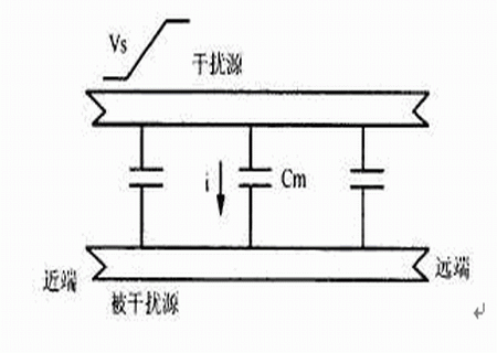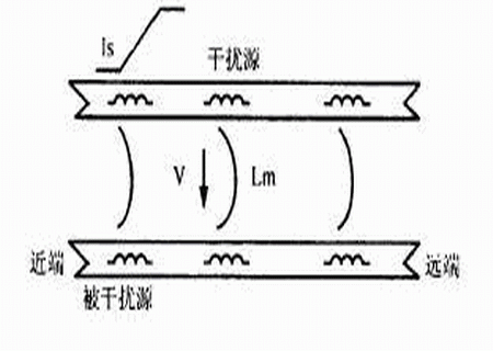 信號在傳輸通道上傳輸對相鄰的傳輸線上引起兩類不同的噪聲信號:容性耦合信號與感性耦合信號,如圖2、圖3所示。容性耦合是由于干擾源(Aggressor)上的電壓(Vs)變化在被干擾對象(Victim)上引起感應(yīng)電流(i)通過互容Cm而導(dǎo)致的電磁干擾,而感性耦合則是由于干擾源上的電流(Is)變化產(chǎn)生的磁場在被干擾對象上引起感應(yīng)電壓(V)通過互感(Lm)而導(dǎo)致的電磁干擾。