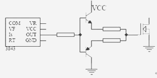 因此得出結論是,單靠提高開關速度來提高DC-DC轉(zhuǎn)換器效率是不可取的。于是,如何選擇合適的驅(qū)動電路參數(shù)、不斷地優(yōu)化驅(qū)動電路的設計,在提高DC-DC轉(zhuǎn)換器的EMC性能的同時又保證總效率等其他參數(shù)指標不受到大的影響,是近年來發(fā)展的一個新方向。例如,在驅(qū)動電路中保留驅(qū)動電阻的同時加入推挽電路以代替二極管,這樣就可以方便地分別調(diào)節(jié)控制開和關的速度,再權衡EMC性能和總效率指標的關系,以達到最理想的效果。如圖3所示。