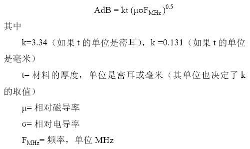 在更高的頻率上,殼體的屏蔽效能取決于吸收。吸收和入射到殼體上的波的種類無關(guān),它由如下所示的表達式給出: