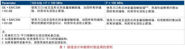 雖然屏蔽面板或外殼可以采用各種材料,但殼體的屏蔽效能主要取決于面板和外殼與殼體之間連接的密封情況,即接縫密封處的射頻搭接的質(zhì)量。任何獨立的面板或外殼,如果沒有充分接地或者和殼體充分搭接,就會成為一個發(fā)射天線。如果將面板單點接地會降低天線的效率并防止其成為天線,但這不會消除通過其它縫隙的泄漏。