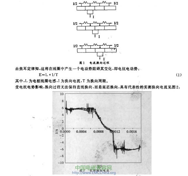 火花使換向區(qū)域附近的空氣介質(zhì)電離,在空氣中形成帶電粒子,形成電磁干擾;