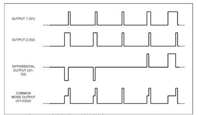顯然,這一新技術(shù)雖具有一些優(yōu)點(diǎn),但放大器輸出將不再對(duì)稱。圖2所示的信號(hào)波形(以MAX9704立體聲D類放大器為例)具有較高的共模分量。