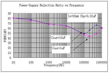 如圖為輸出電容對PSRR的影響。大電容器一般在一定頻率范圍內(nèi)會提高電源抑制比(PSRR)