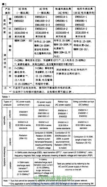 表1不包括以無線電發(fā)射接收為主要功能的玩具(如遙控車、對(duì)講機(jī)等).歐洲對(duì)該類產(chǎn)品有專用標(biāo)準(zhǔn)要求,在此就不另行介紹。