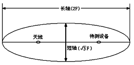 10kHz~1000MHz頻段的輻射測(cè)試場(chǎng)地應(yīng)該是一個(gè)空曠、平坦的場(chǎng)地,在其邊界范圍內(nèi)無(wú)架空線,附近無(wú)反射結(jié)構(gòu)物(如鋼筋水泥建筑和高大樹(shù)木等),而且具有足夠大的尺寸,使天線、試品和反射結(jié)構(gòu)物之間能充分分開(kāi)。滿足標(biāo)準(zhǔn)的輻射測(cè)試場(chǎng)地應(yīng)該是一個(gè)由長(zhǎng)軸等于兩倍焦距(F)、短軸等于倍焦距的橢圓所包圍的場(chǎng)地,如圖1所示。試驗(yàn)時(shí),EUT和測(cè)量天線將分別處在兩個(gè)焦點(diǎn)上。