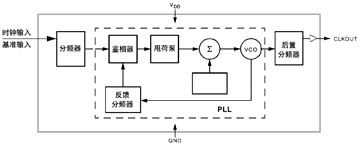 W181采用了頻率鎖相環(huán)(PLL)技術來調制輸入時鐘,其結果是得到一個輸出時鐘,它的頻率可緩慢地掃過一個接近于輸入信號的窄帶?;倦娐方Y構如圖2所示。