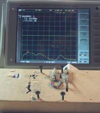 如圖2所示,不論是選擇加工還是購(gòu)買(mǎi)環(huán)天線,兩個(gè)環(huán)天線都必須被小心地放置在相互垂直的位置上,以便獲得兩天線之間的最小耦合;而用于支撐測(cè)試裝置的平臺(tái)則可以簡(jiǎn)單的用木頭和塑料來(lái)實(shí)現(xiàn)。如前所述,測(cè)試裝置中的一個(gè)探頭會(huì)被連接到RF掃頻源,而另一個(gè)探頭則會(huì)被連接到掃頻接收機(jī)上。如果測(cè)試試驗(yàn)室內(nèi)裝備有矢量網(wǎng)絡(luò)分析儀,那么只要其RF信號(hào)源和接收端口之間的隔離度大于70dB,則綜合了頻譜分析儀功能和掃頻信號(hào)源功能的網(wǎng)絡(luò)分析儀就能很好的完成本項(xiàng)測(cè)試任務(wù)。另外,測(cè)試過(guò)程中環(huán)天線必須被固定在介質(zhì)材料上,例如木頭和塑料。基本的測(cè)試裝置并不復(fù)雜,通過(guò)在木塊上插入螺絲釘就可以得到一個(gè)如圖2所示的簡(jiǎn)單的測(cè)試裝置。