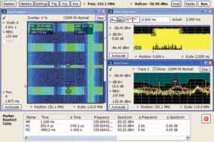 與掃頻技術(shù)相比,實時分析技術(shù)大大縮短了保證100%瞬態(tài)信號偵聽概率所需的最低信號時長。通過使用擁有DPX頻譜處理技術(shù)的實時頻譜分析儀,可以簡便地調(diào)試產(chǎn)生各種瞬態(tài)信號的系統(tǒng),保證在分析過程中不會漏掉瞬態(tài)信號。這縮短了獲得信息的時間,提高了確定被測設(shè)備質(zhì)量的信心。