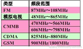 EMI主要通過PCB的走線、通孔和揚(yáng)聲器的連線向外輻射,較大能量的EMI輻射需要一個“高效率”的天線,對不同的頻率,一個有效的天線長度是該頻率波長的四分之一(λ/4),小于這個長度,就不能形成有效的對外輻射。對30MHz的頻率,采用一般的FR4的PCB板,天線長度需要大于114.1cm才能形成有效的輻射。所以在手機(jī)上采用D類放大器時,在放大器輸出的PCB走線和揚(yáng)聲器連線上的方波邊沿變化是EMI的最重要來源。特別是手機(jī)應(yīng)用中所關(guān)心的一些頻段,如下表所示:基本都在100MHz以上,因此我們需要特別地關(guān)注由方波邊沿變化所引起的EMI輻射。